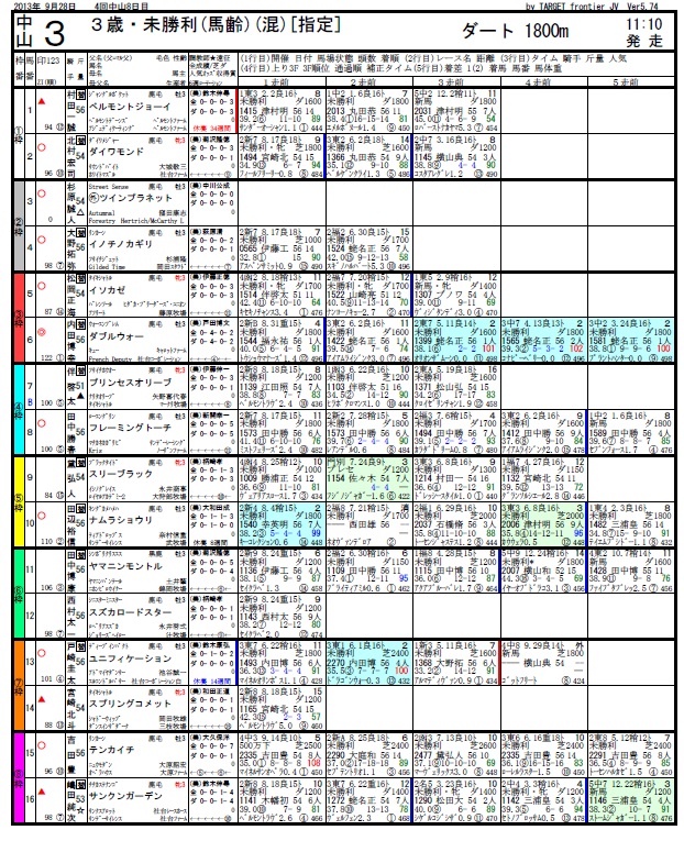 3連複・フォーメーション [全38点x1000円=計38000円]