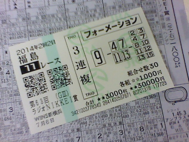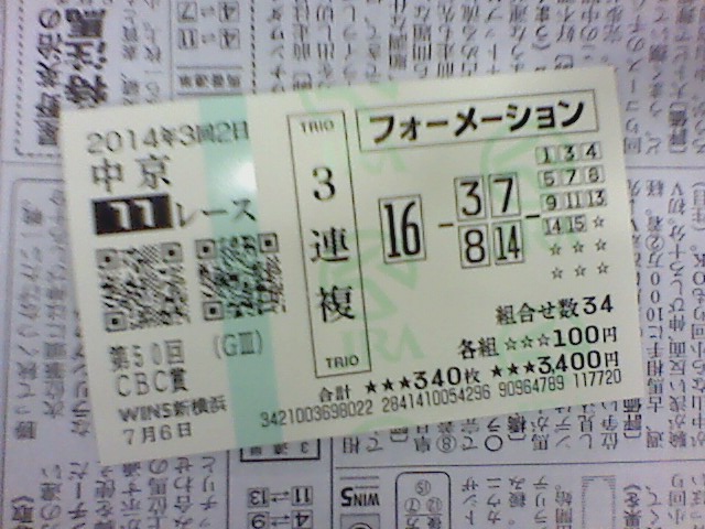 | 6 | 6 | ? | シゲルカガ | 牡3 | 54 | 戸崎圭太 | 1.07.7 | ||