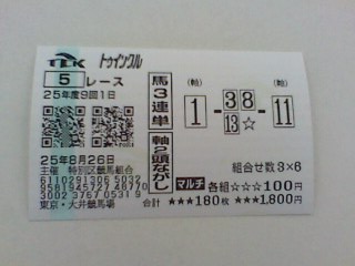 第五話 特訓!大井ケイバジョウの巻 Category:競馬場のハツネ Date:2013年08月31日 ↑大井にて再び勝利を誓うミクとメイコ ミク「だいぶ期間が開いてしまったこと、お詫びいたします……」 メイコ「ま、気楽に行きましょ。」 ミク「そうね。今回は……そうか。大井競馬場に行ってきたんだったわ」 メイコ「そうそう!じゃ、さっそく結果報告ね!」 ミク三連複 あたり!9,780円 メイコ3連単 あたり!119,060円 ☆収支☆収支☆ミク 出費-600 払戻+9780 収益-8700メイコ 出費-2400 払戻+119,060 収益+126940 メイコ「ごめぇん、ヤッチャッタ☆」 ミク「……(いち、じゅう、ひゃく、せん、まん……)」 ミク「桁がおかしいと思ったら……」 メイコ「仕事帰りでたまたまあてちゃったのよねw焼肉でも奢ってあげるわ」 ミク「まあ、今回は私もプラスだったけどね!」 ※ ※ ※ ミク「ねえ、競馬ブログだし、予想の公開しようよ」 メイコ「んー、外れたら恥ずかしいからなあ」 ミク「100k払い戻し出した人が、何を」 メイコ「しょうがないなあ。クレーム来たらやめるかんね!」 ミク「お、やるの!?やるの!?」 メイコ「今週、てか今日の予想しますか。」 ミク「しますか、って、そんなすぐできるの?」 メイコ「うん」 ☆メイコ予想☆ 北九州短距離S 3連単2頭マルチ 軸4 軸11 相手1.3.5.6.7.9.10.14.15.16.17.18 札幌2歳S 3連単2頭マルチ 軸6 軸11 相手1.2.3.4.5.7.8.9.10.11.12.13.14 ミク「おねえちゃ、点数おおすぎじゃない!?」 メイコ「直前オッズで削るからまあ、こんなもんね。軸だって場合によっては変えちゃうし」 ミク「そんな適当な……」 ☆ミク予想☆ 北九州短距離S 三連複フォーメーション 軸 11 相手 4.7.16.18 相手 1.4.7.11.1.16.13.18 ミク「おねえちゃんのパクリw」 メイコ「あたるといいね!」 にほんブログ村 @keibamikuさんをフォロー http://